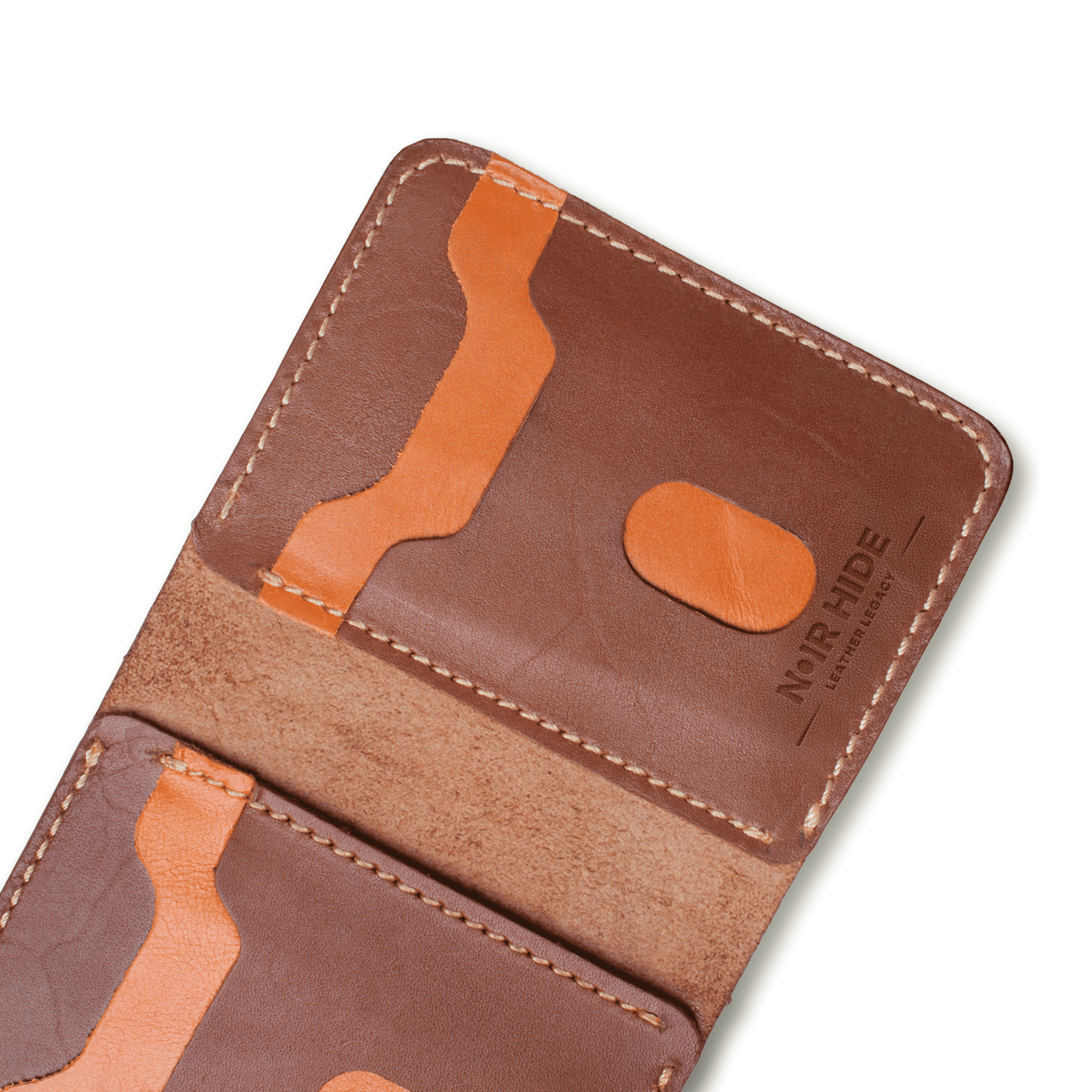Handcrafted from premium full-grain leather and hand-stitched for a lifetime of use. This compact bifold features four card slots and two dedicated pockets for folded cash, offering maximum organization in a slim, pocket-friendly profile. A refined essential that ages with character